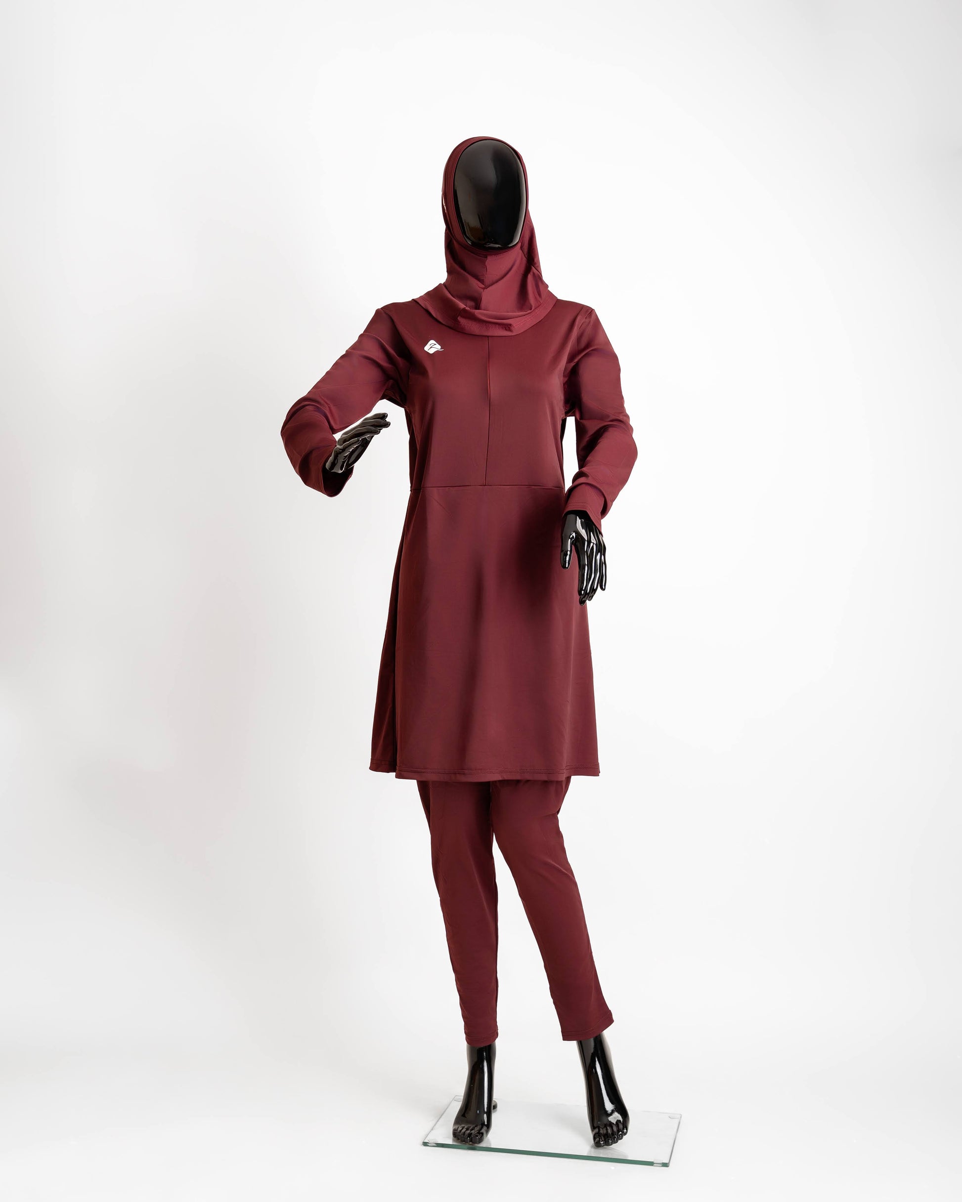 ZAIBA Modest ActiveFlow Jumpsuit With Skirt & Hijab Set - Maroon